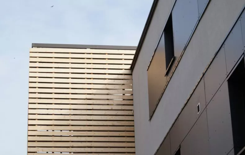 Le projet consiste en la construction de 10 logements en immeuble collectif de structure bois/béton, avec structure métallique désolidarisée pour les terrasses et les coursives extérieures. L’accès aux différents niveaux se fait par l’armature métallique habillée de bardage bois composée d’un ascenseur et d’un escalier béton, desservant les coursives. La toiture végétalisée procurant un confort thermique et acoustique, s’inscrit dans la démarche HQE et permet la régulation des débits hydriques (eau accumulée dont une partie est utilisée par les plantes). Labélisé BBC Effinergie, ce bâtiment dispose d’une production de chauffage collectif par le biais d’une pompe à chaleur géothermique (3 forages verticaux de 90m chacun). L’eau chaude sanitaire est quant à elle individuelle par chauffe-eau thermodynamique. Développé de manière linéaire, l’édifice jouit de clarté et d’une vue dégagée sur les Alpes et le Massif du Mont-Blanc. La situation et l’orientation Sud-Est offrent aux différents appartements traversants, des espaces extérieurs privatifs de qualité. Logements T2 à T4, sur la commune de Divonne-les-Bains, emplacement stratégique à la frontière Suisse, entre Genève et le Jura.
