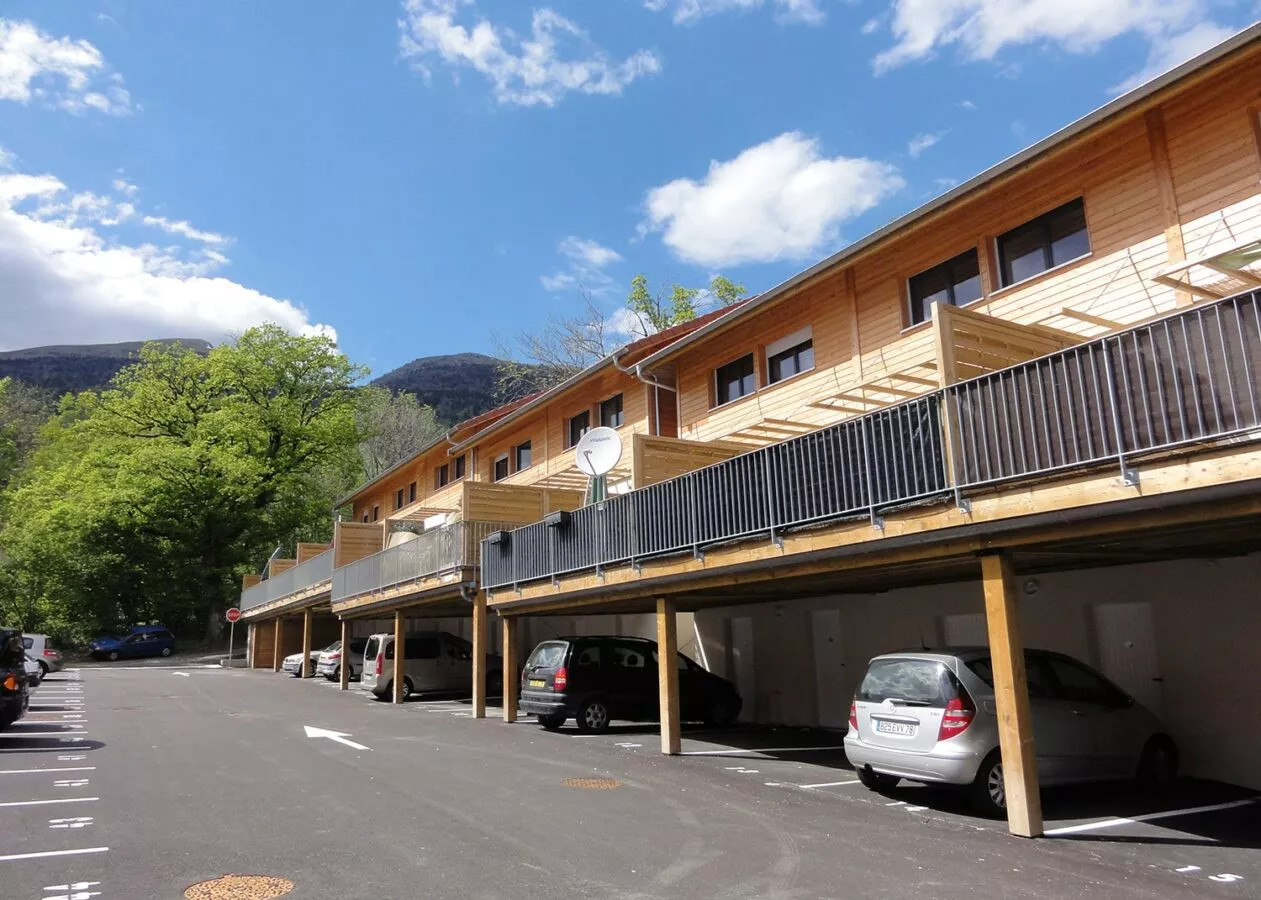 Projet de 48 logements intermédiaires allant du T1 au T4 avec jardins privatifs. Cette Opération BBC a été réalisée avec des panneaux préfabriqués en bois par SOCOPA. Situé au pied du Jura, le Hameau de la Bergerie a une vue remarquable sur les Alpes, notamment sur le Mont-Blanc.