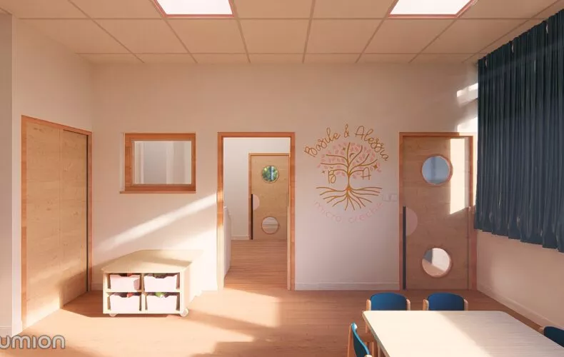 Nichée à Toussieu, la micro-crèche Basile et Alessia est désormais prête à accueillir les tout-petits dans un environnement pensé avec soin et créativité. De la conception initiale à la réalisation finale, chaque détail a été façonné pour offrir un espace chaleureux, sécurisé et stimulant, où l’apprentissage et l’épanouissement des enfants sont au cœur de notre démarche.