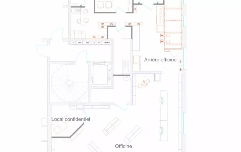 Ce projet se focalise sur l’aménagement d’une pharmacie au rez-de-chaussée d’un immeuble résidentiel au sein d’une initiative de promotion immobilière à Saint-André-lez-Lille. L’objectif principal était de concevoir un espace à la fois intime et chaleureux, favorisant des interactions fluides et personnalisées entre les pharmaciens et la clientèle.